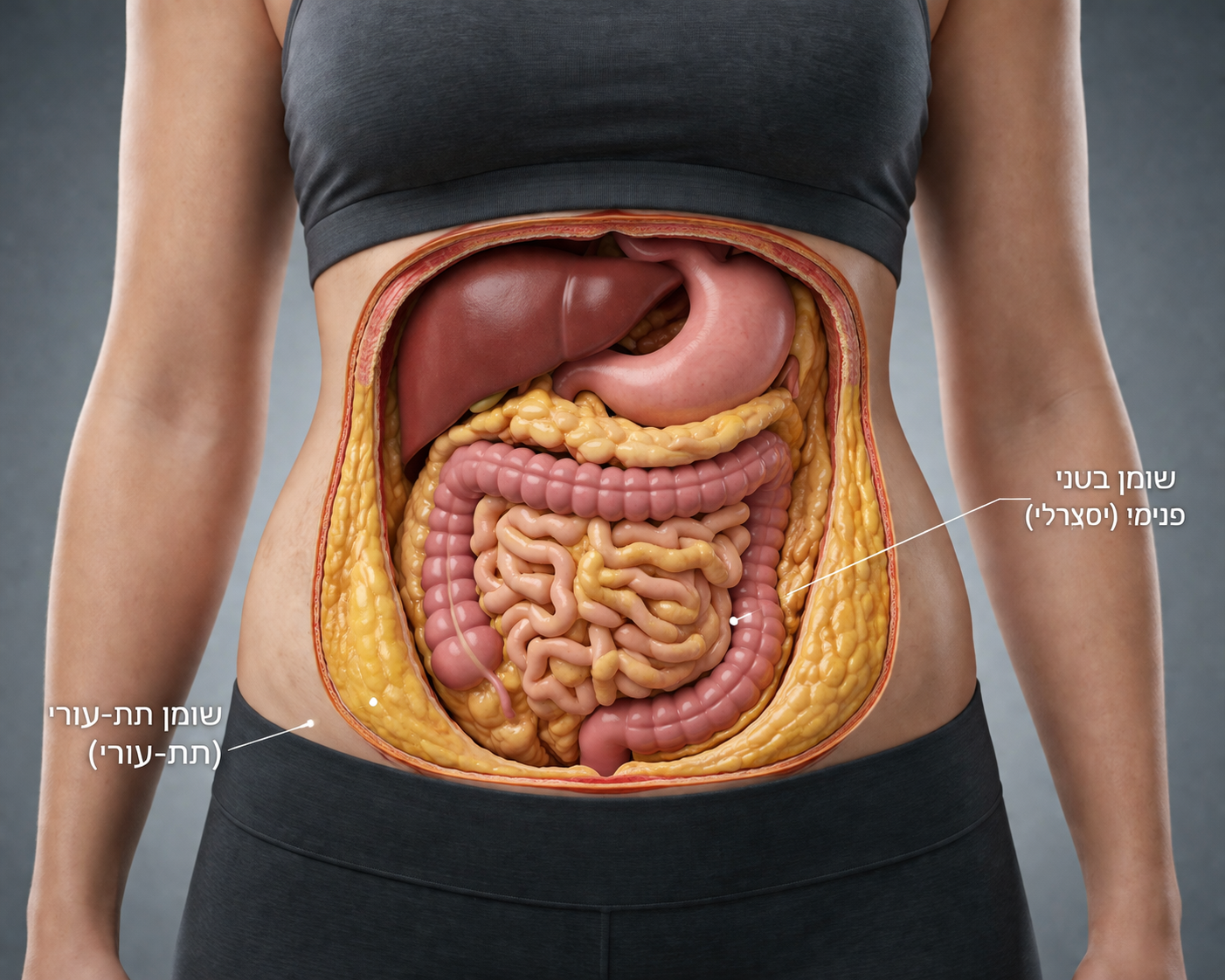 שומן בטני (שומן ויסצרלי) מצטבר סביב האיברים הפנימיים, והוא נחשב לבעייתי יותר משומן באזורים אחרים בגוף.