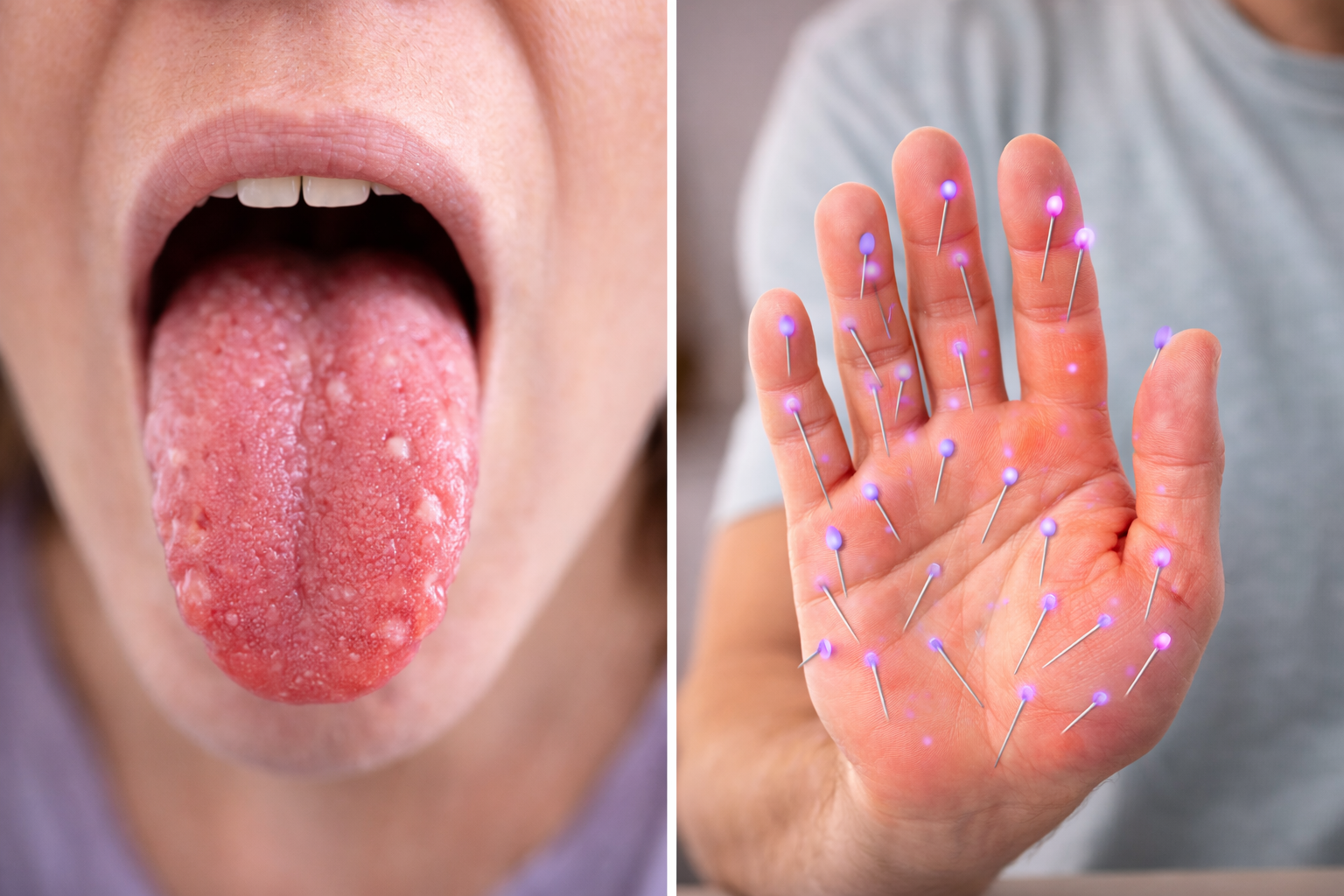 לשון אדומה, נפוחה וכואבת (גלוסיטיס) עשויה להיות סימן מוקדם למחסור ב־B12.